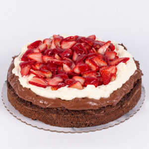 Brownie, mousse de chocolate 70%, crema chantilly y frutilla